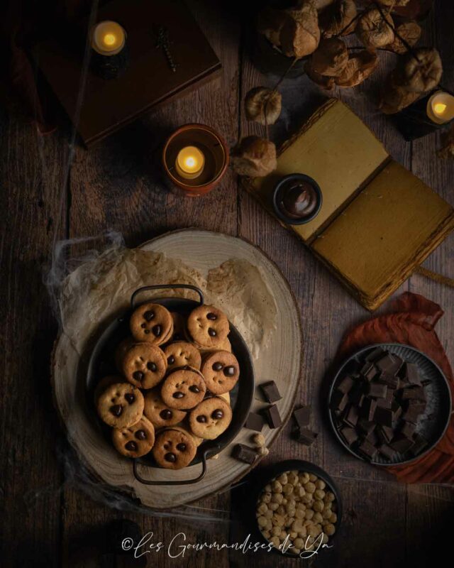 Cette année, pour Halloween, j’ai réalisé des biscuits au chocolat et à la noisette inspirés des recettes de Framboise et Vanille. Elles proviennent de son livre Petits Gâteaux Cultes.