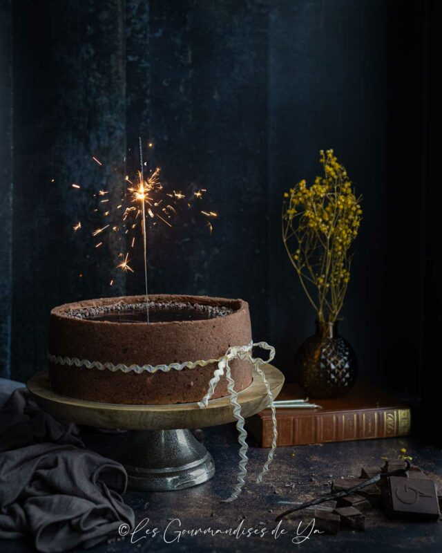 Il a rencontré un vif succès la première fois auprès de notre ami, j’ai donc décidé de le refaire pour mes collègues où il a obtenu les mêmes appréciations. C’était également l’occasion de m’entraîner à la photographie culinaire pour capturer la fumée et les étincelles des cierges magiques. Je ne suis pas mécontente du résultat.