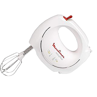 Batteur électrique Moulinex, très pratique pour réaliser les recettes comme la meringue suisse ou la génoise que l’on doit monter au batteur pendant la cuisson. J’utilise une version plus ancienne depuis environ une quinzaine d’années.