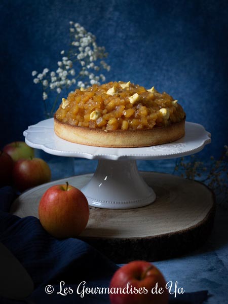 Afin d’avoir les proportions idéales pour une tarte de 20 cm de diamètre, il fallait que je diminue ou augmente les quantités de chacune des recettes. Je n’ai pas utilisé des pommes Pink Lady, mais plutôt celles que j’avais à disposition chez moi. Malheureusement, impossible de retrouver la variété utilisée, car nous avions acheté environ 20 kg de pommes en novembre en direct avec un producteur…).
